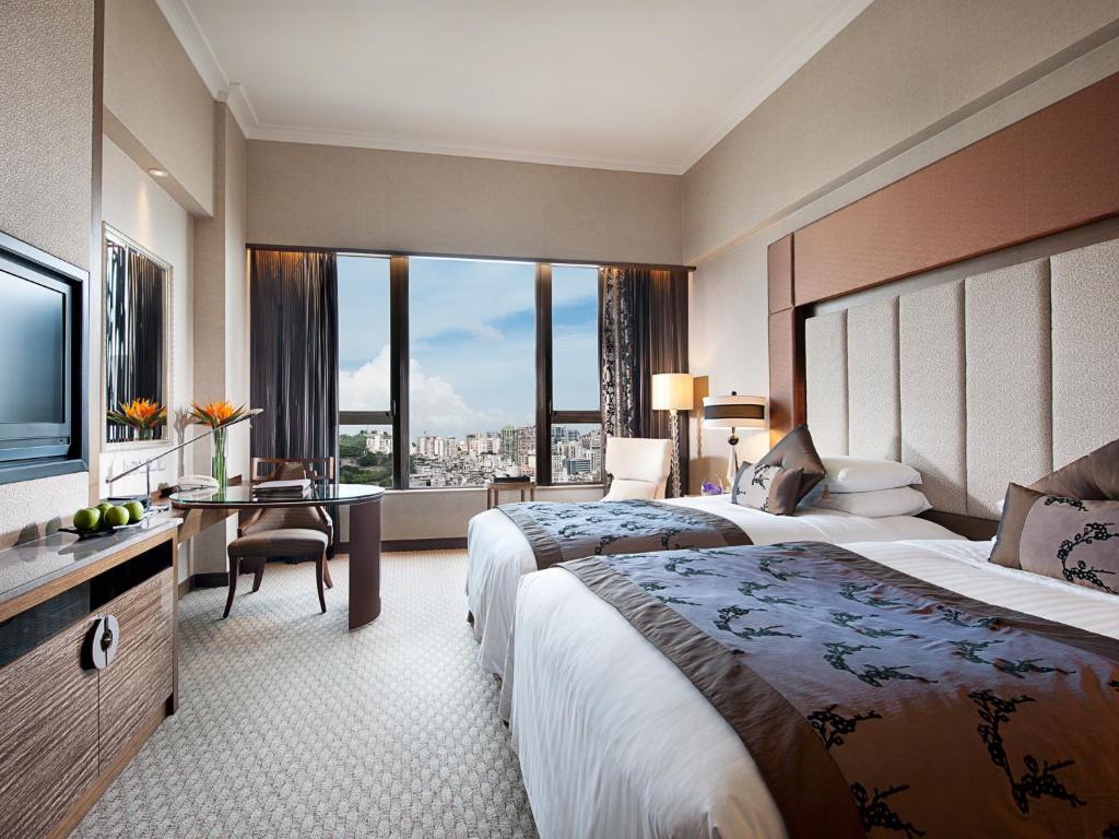 pase una sola noche en este hotel, ya que fui desde hong kong. nos dieron un upgrade a una habitación mas lujosa que la que habíamos reservado por lo que era muy amplia y con unas vistas estupendas. tiene todo lo que se puede esperar de un hotel de 5 estrellas y más, ya que hay un casino en el mismo edificio. está situado a un corto paseo de la zona más centrica y turística de macao. hay minibuses que van desde el puerto al hotel cada 15 minutos, lo que fue muy de agradecer.